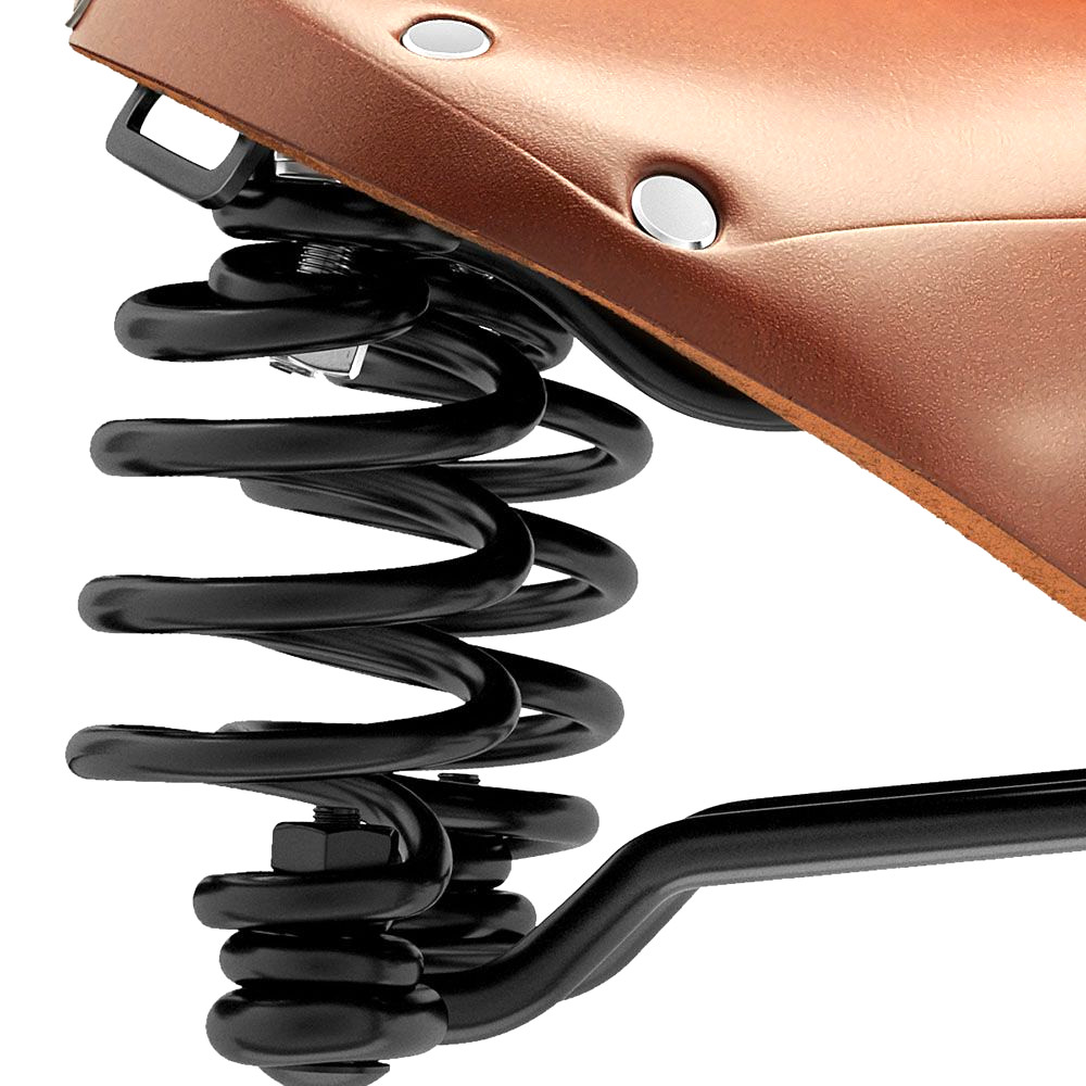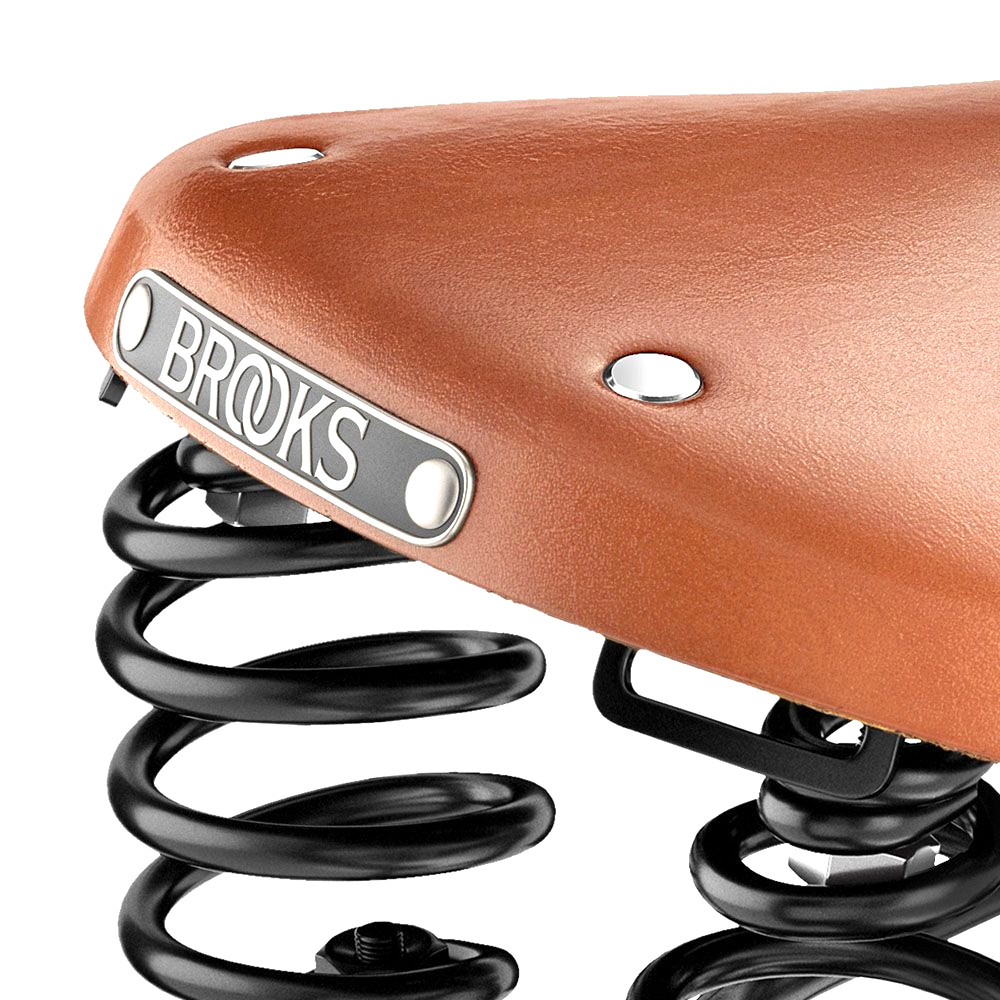 Der Brooks Flyer ist ein besonders komfortabler Ledersattel. Das strapazierfähige, pflanzlich gegerbte Leder passt sich während der Einfahrphase an die Körperform an und bietet gemeinsam mit der grosszügigen Federung maximalen Fahrkomfort. Das mit Nubuk behandelte Leder ist weich und von Natur aus atmungsaktiv. Die Konstruktion des Broosk Flyer ähnelt der einer Hängematte und sorgt für maximalen Fahrkomfort.