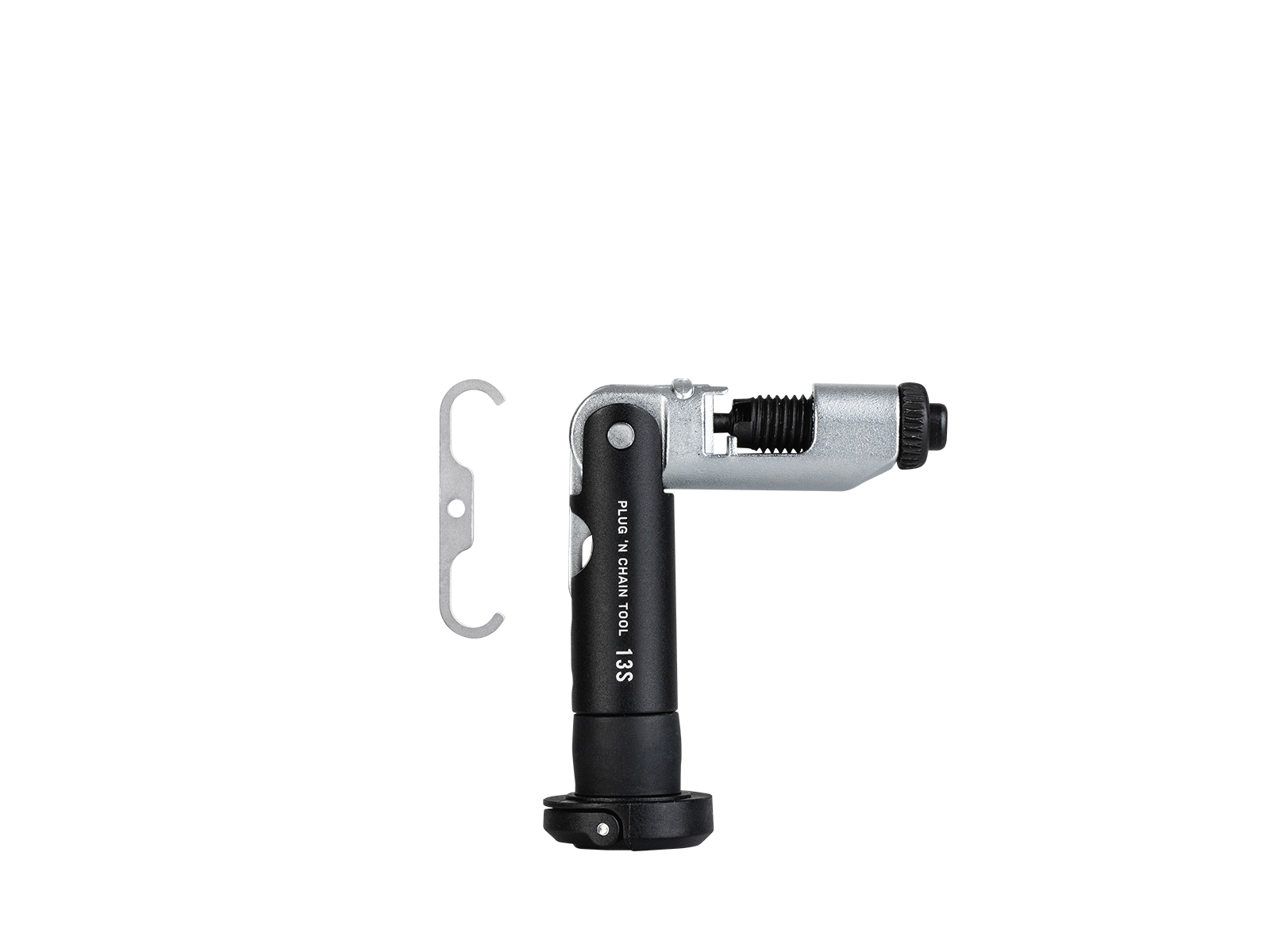 Das Topeak Plug ´n Chain Tool versteckt sich dezent und klapperfrei in deinem Lenkerende. Das Kettenwerkzeug-Set besteht aus einem robusten CrMo Kettennieter und Kettenhaken für Single- und Multi-Speed Ketten bis 13-fach, einschliesslich SRAM Flattop und Campagnolo Hollow Pin Ketten.