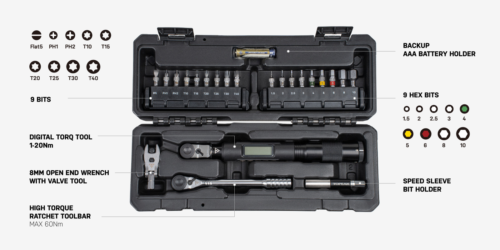 Der Topeak Torq Stick PRO Digital Werkzeugkasten, bietet dir alles, was das Schrauberherz begehrt.